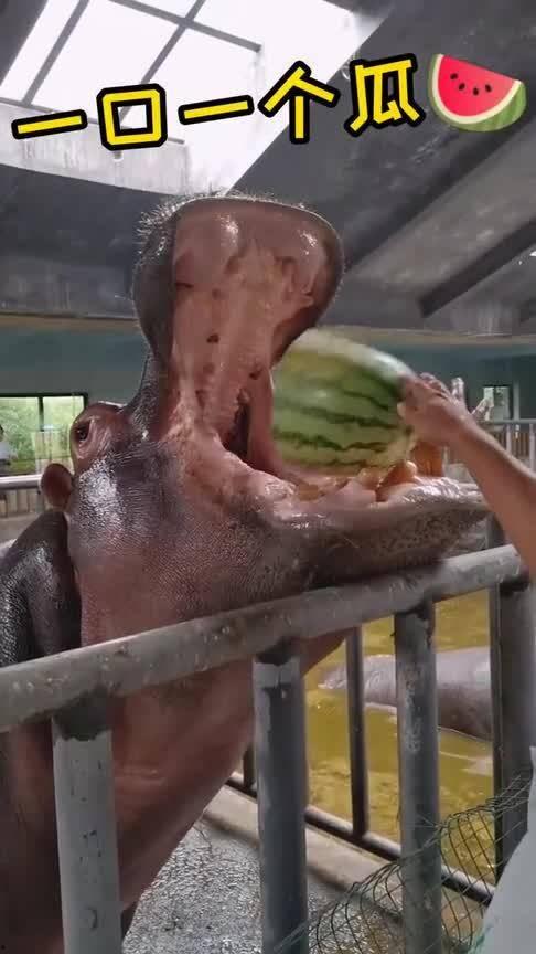 广州动物公园河马吃瓜,广州动物公园河马欢乐“瓜”果时光